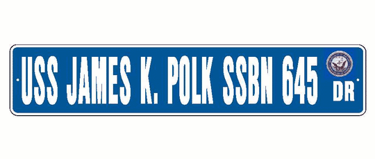USS JAMES K POLK SSBN 645 Aluminum Street Sign Blue / White 6" x 30" Military USN SS001