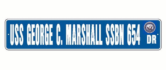 USS GEORGE C MARSHAL SSBN 654 Aluminum Street Sign Blue / White 6" x 30" Military USN SS001