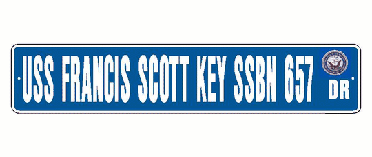 USS FRANCIS SCOTT KEY SSBN 657 Aluminum Street Sign Blue / White 6" x 30" Military USN SS001