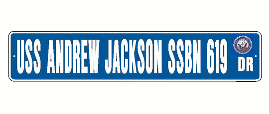USS ANDREW JACKSON SSBN 619 Aluminum Street Sign Blue / White 6" x 30" Military USN SS001