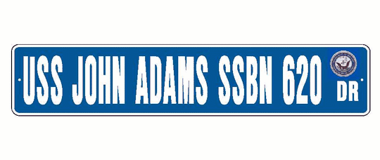 USS JOHN ADAMS SSBN 620 Aluminum Street Sign Blue / White 6" x 30" Military USN SS001