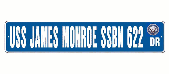 USS JAMES MONROE SSBN 622 Aluminum Street Sign Blue / White 6" x 30" Military USN SS001