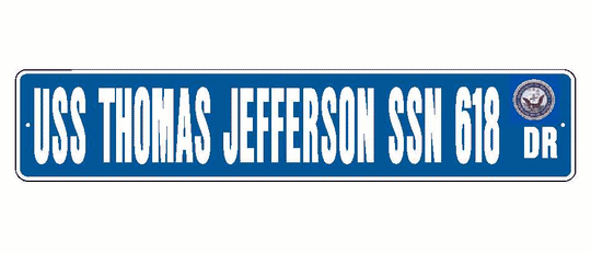 USS THOMAS JEFFERSON SSN 618 Aluminum Street Sign Blue / White 6" x 30" Military USN SS001