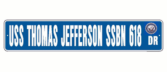 USS THOMAS JEFFERSON SSBN 618 Aluminum Street Sign Blue / White 6" x 30" Military USN SS001