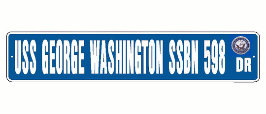 USS GEORGE WASHINGTON SSBN 598 Aluminum Street Sign Blue / White 6" x 30" Military USN SS001