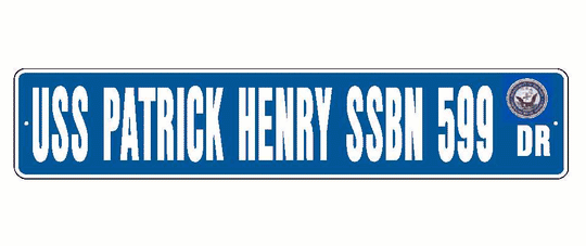 USS PATRICK HENRY SSBN 599 Aluminum Street Sign Blue / White 6" x 30" Military USN SS001