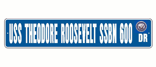 USS THEODORE ROOSEVELT SSBN 600 Aluminum Street Sign Blue / White 6" x 30" Military USN SS001