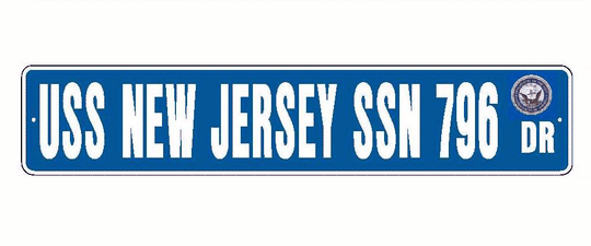 USS NEW JERSEY SSN 796 Aluminum Street Sign Blue / White 6" x 30" Military USN SS001