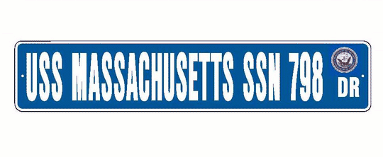 USS MASSACHUSETTS SSN 798 Aluminum Street Sign Blue / White 6" x 30" Military USN SS001