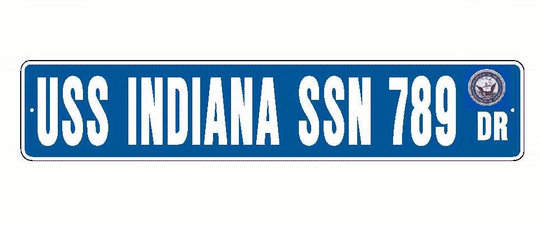 USS INDIANA SSN 789 Aluminum Street Sign Blue / White 6" x 30" Military USN SS001