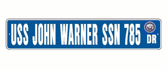 USS JOHN WARNER SSN 785 Aluminum Street Sign Blue / White 6" x 30" Military USN SS001