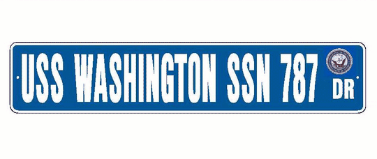 USS WASHINGTON SSN 787 Aluminum Street Sign Blue / White 6" x 30" Military USN SS001