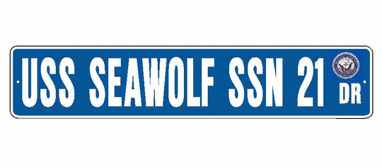 USS SEAWOLF SSN 21 Aluminum Street Sign Blue / White 6" x 30" Military USN SS001