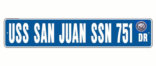 USS SAN JUAN SSN 751 Aluminum Street Sign Blue / White 6" x 30" Military USN SS001
