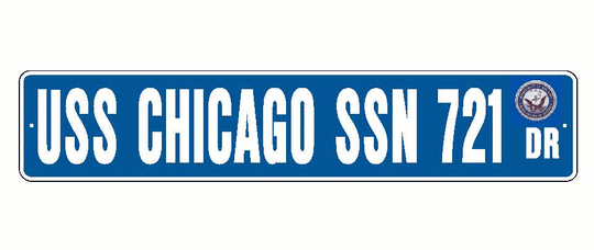 USS CHICAGO SSN 721 Aluminum Street Sign Blue / White 6" x 30" Military USN SS001