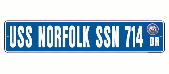 USS NORFOLK SSN 714 Aluminum Street Sign Blue / White 6" x 30" Military USN SS001