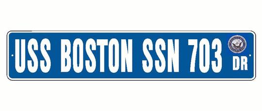 USS BOSTON SSN 703 Aluminum Street Sign Blue / White 6" x 30" Military USN SS001