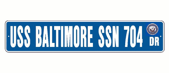 USS BALTIMORE SSN 704 Aluminum Street Sign Blue / White 6" x 30" Military USN SS001