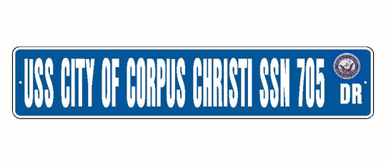 USS CITY OF CORPUS CHRISTI SSN 705 Aluminum Street Sign Blue / White 6" x 30" Military USN SS001