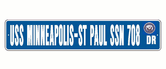 USS MINNEAPOLIS-ST PAUL SSN 708 Aluminum Street Sign Blue / White 6" x 30" Military USN SS001