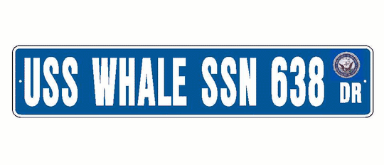 USS WHALE SSN 638 Aluminum Street Sign Blue / White 6" x 30" Military USN SS001