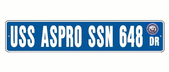 USS ASPRO SSN 648 Aluminum Street Sign Blue / White 6" x 30" Military USN SS001