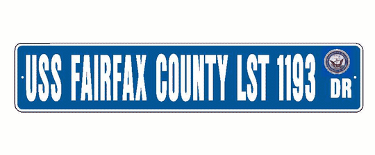 USS FARFAX COUNTY LST 1193 Aluminum Street Sign Blue / White 6" x 30" Military USN SS001