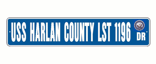 USS HARLAN COUNTY LST 1196 Aluminum Street Sign Blue / White 6" x 30" Military USN SS001