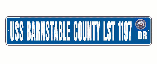 USS BARNSTABLE COUNTY LST 1197 Aluminum Street Sign Blue / White 6" x 30" Military USN SS001