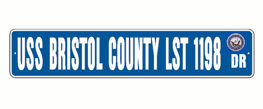 USS BRISTOL COUNTY LST 1198 Aluminum Street Sign Blue / White 6" x 30" Military USN SS001