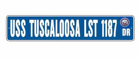 USS TUSCALOOSA LST 1187 Aluminum Street Sign Blue / White 6" x 30" Military USN SS001