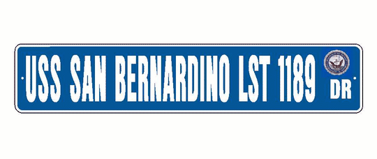USS SAN BERNARDINO LST 1189 Aluminum Street Sign Blue / White 6" x 30" Military USN SS001