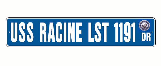 USS RACINE LST 1191 Aluminum Street Sign Blue / White 6" x 30" Military USN SS001