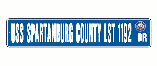 USS SPARTANBURG COUNTY LST 1192 Aluminum Street Sign Blue / White 6" x 30" Military USN SS001