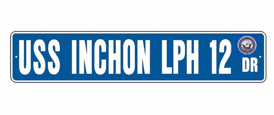 USS INCHON LPH 12 Aluminum Street Sign Blue / White 6" x 30" Military USN SS001