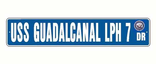 USS GUADAL CANAL LPH 7 Aluminum Street Sign Blue / White 6" x 30" Military USN SS001