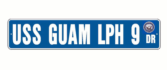 USS GAUM LPH 9 Aluminum Street Sign Blue / White 6" x 30" Military USN SS001