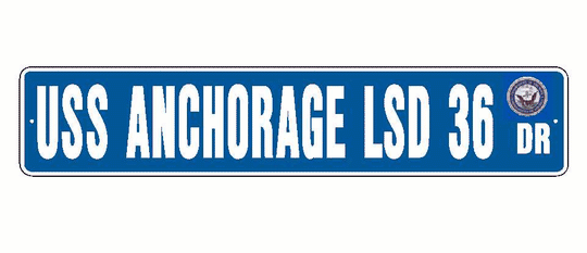 USS ANCHORAGE LSD 36 Aluminum Street Sign Blue / White 6" x 30" Military USN SS001