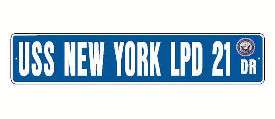 USS NEW YORK LPD 21 Aluminum Street Sign Blue / White 6" x 30" Military USN SS001