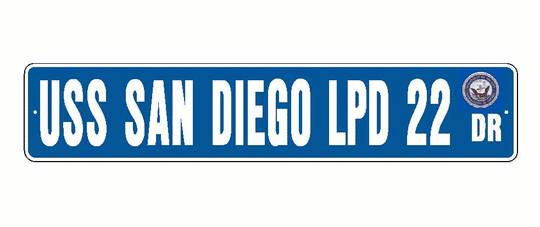 USS SAN DIEGO LPD 22 Aluminum Street Sign Blue / White 6" x 30" Military USN SS001