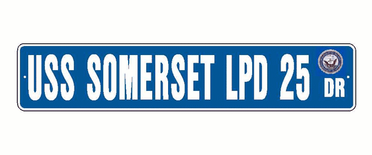 USS SOMERSET LPD 25 Aluminum Street Sign Blue / White 6" x 30" Military USN SS001