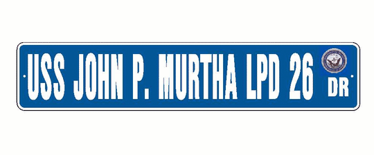 USS JOHN P MURTHA LPD 26 Aluminum Street Sign Blue / White 6" x 30" Military USN SS001