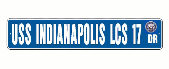 USS INDIANAPOLIS LCS 17 Aluminum Street Sign Blue / White 6" x 30" Military USN SS001