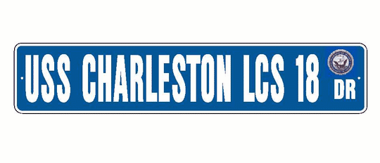 USS CHARLESTON LCS 18 Aluminum Street Sign Blue / White 6" x 30" Military USN SS001