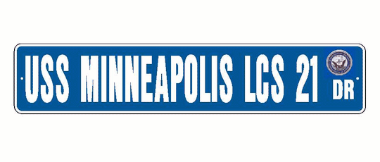 USS MINNEAPOLIS LCS 21 Aluminum Street Sign Blue / White 6" x 30" Military USN SS001