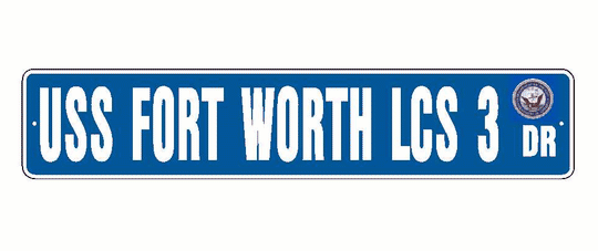 USS FORT WORTH LCS 3 Aluminum Street Sign Blue / White 6" x 30" Military USN SS001