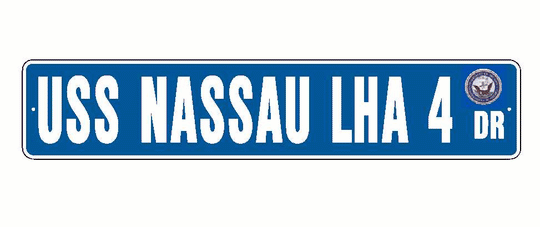 USS NASSAU LHA 4 Aluminum Street Sign Blue / White 6" x 30" Military USN SS001