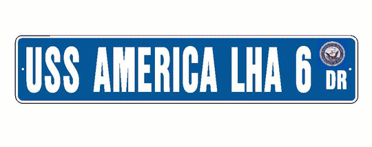 USS AMERICA LHA 6 Aluminum Street Sign Blue / White 6" x 30" Military USN SS001