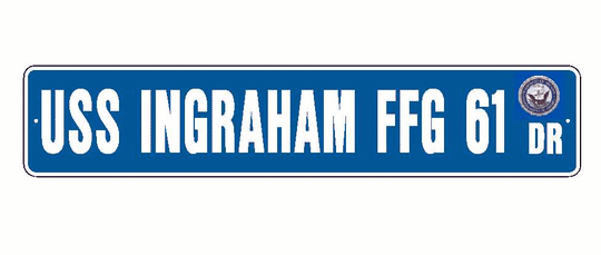 USS INGRAHAM FFG 61 Aluminum Street Sign Blue / White 6" x 30" Military USN SS001
