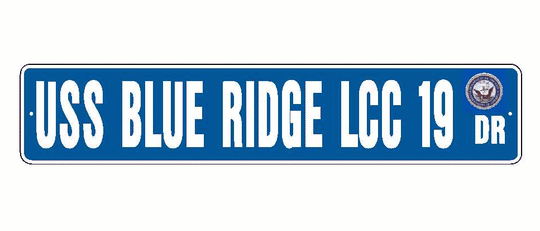 USS BLUE RIDGE LCC 19 Aluminum Street Sign Blue / White 6" x 30" Military USN SS001